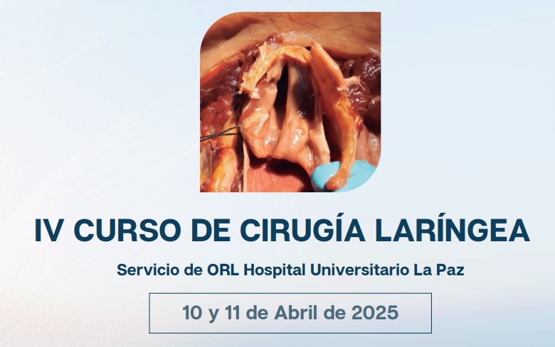 Dirigido por la Dra. Isabel García López, el Dr. Ricardo Bernáldez Millán y la Dra. Teresa Rivera Schmitz, el servicio de ORL del Hospital de la Paz presenta su IV Curso de Cirugía Laríngea con un enfoque eminentemente práctico en el que repasan las técnicas quirúrgicas más habituales en la cirugía laríngea no oncológica. La IV edición cuenta con el Dr. Yakubu Karagama como invitado internacional.