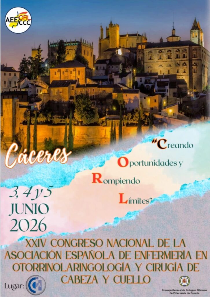 El XXIV Congreso Nacional de Enfermería de Otorrinolaringología cabeza y cuello, se celebrará en Cáceres, del 3 al 5 de Junio de 2026, en el Centro de Cirugía de Mínima Invasión Jesús Usó. Este congreso será un espacio para la reflexión, el aprendizaje y la propuesta de nuevos hitos. Abordará las temáticas más relevantes en […]